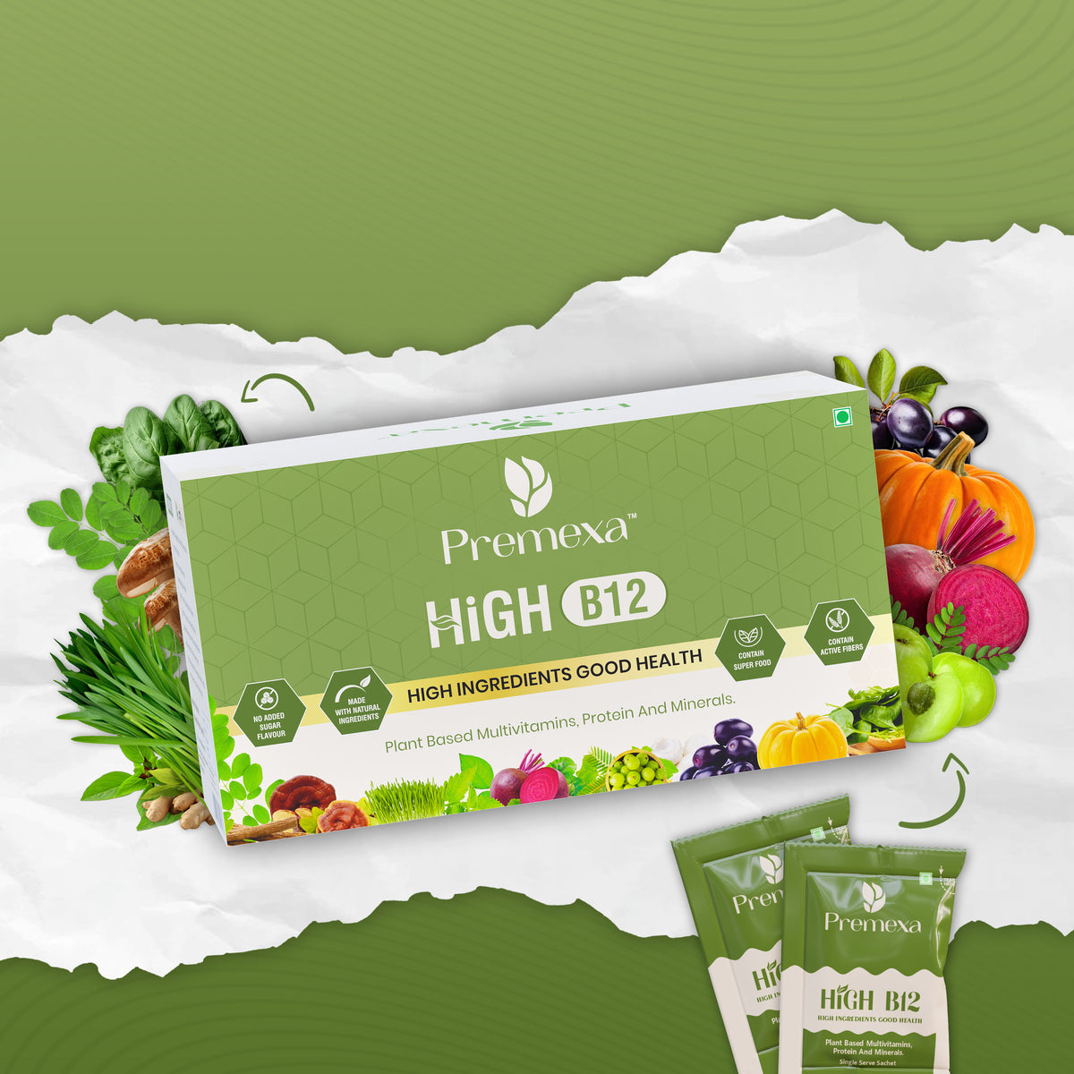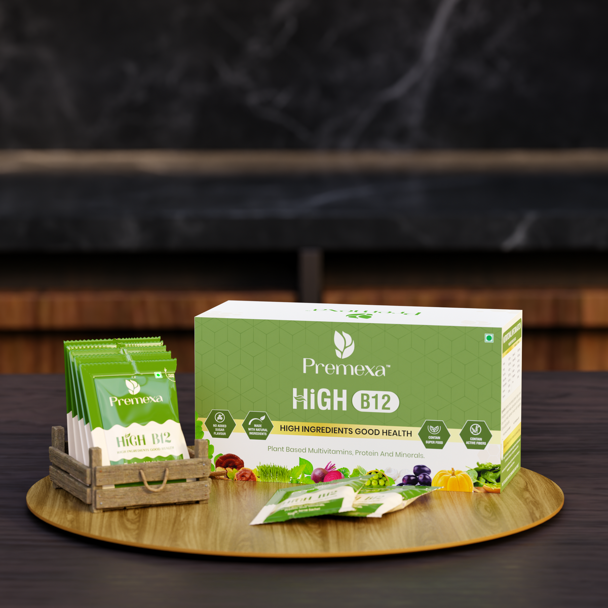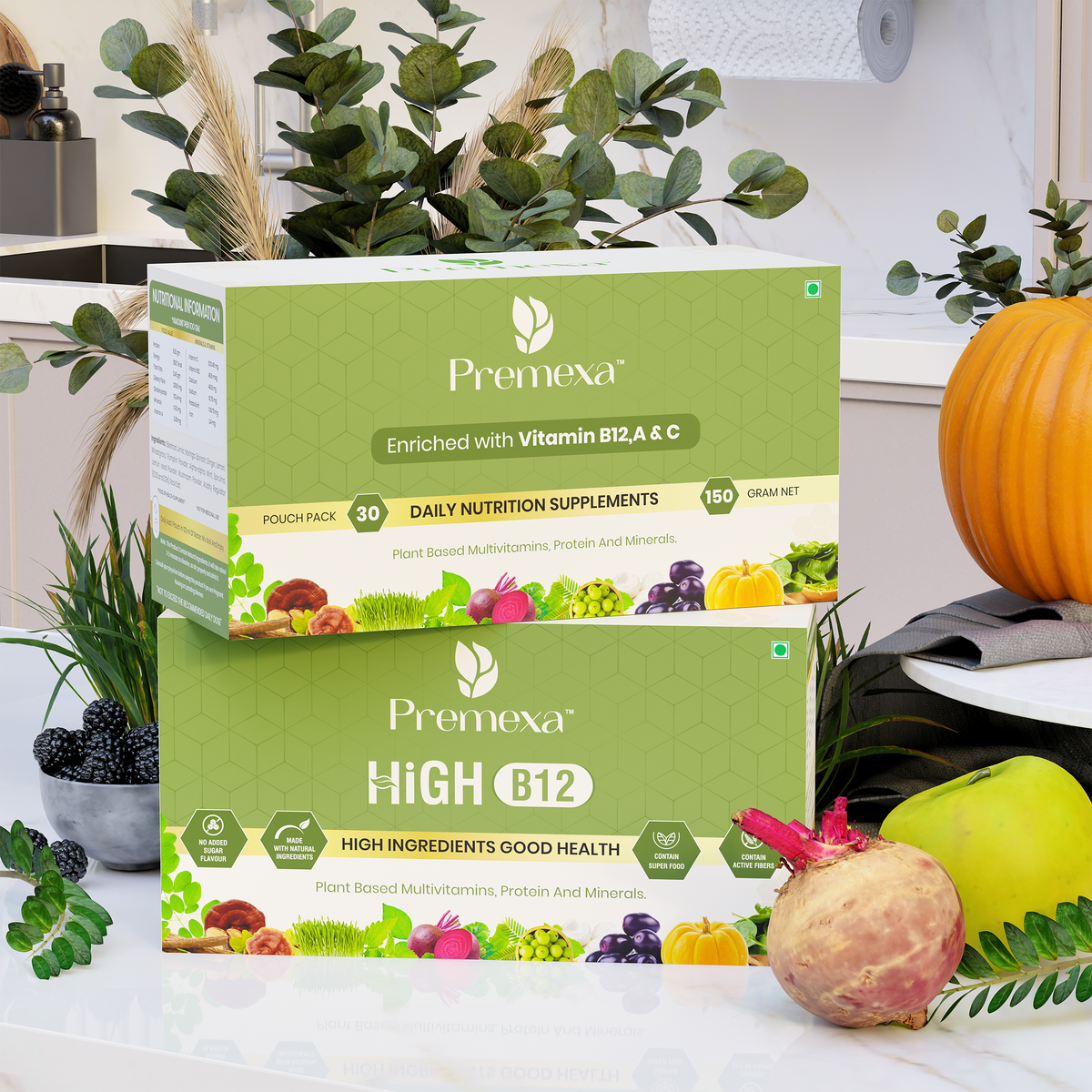 Experience the power of plant-based nutrition with Premexa™ HiGH B12, a premium blend of multivitamins, protein, and essential minerals designed to nourish your body. Enriched with superfoods and active fibers, this natural supplement supports overall well-being, energy levels, and vitality.